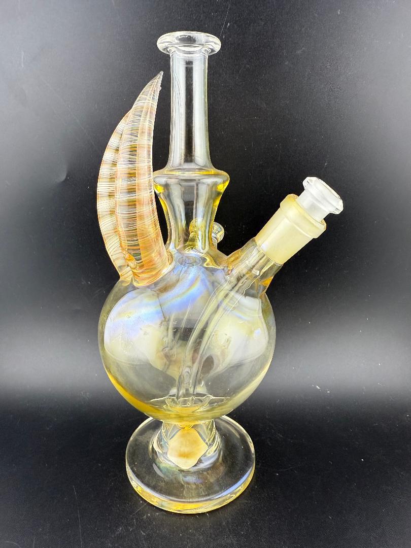 Discover the perfect mix of bold design and expert craftsmanship with the Brando Glass Horned Fumed Rig. This striking piece features unique horned accents paired with Brando Glass’s signature fumed finish, delivering vibrant color shifts and a dynamic visual experience.