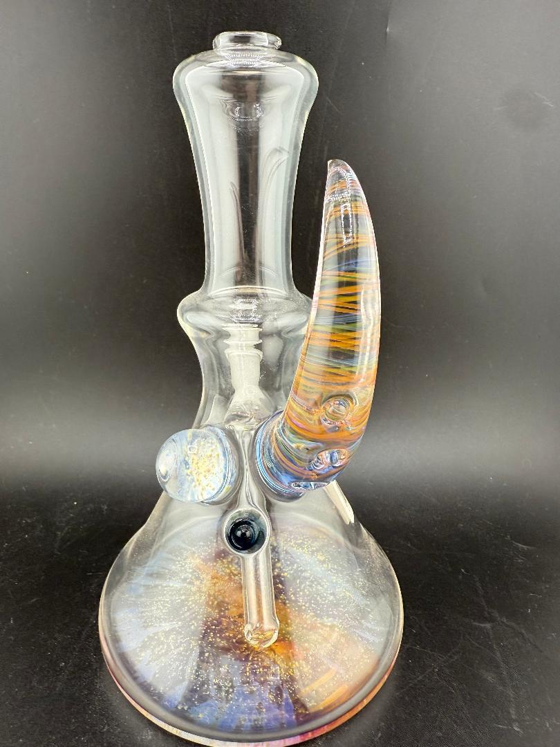 Brando Glass Mini Beaker – Fumed Horn & Fumed Space Tech Accents 10mm 45°