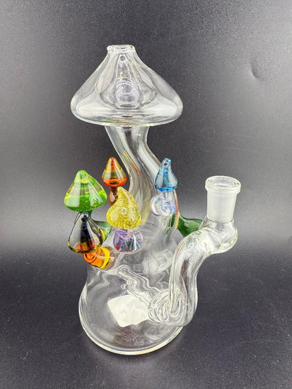 • Clear mushroom-shaped rig with striking rainbow-colored mushroom growths