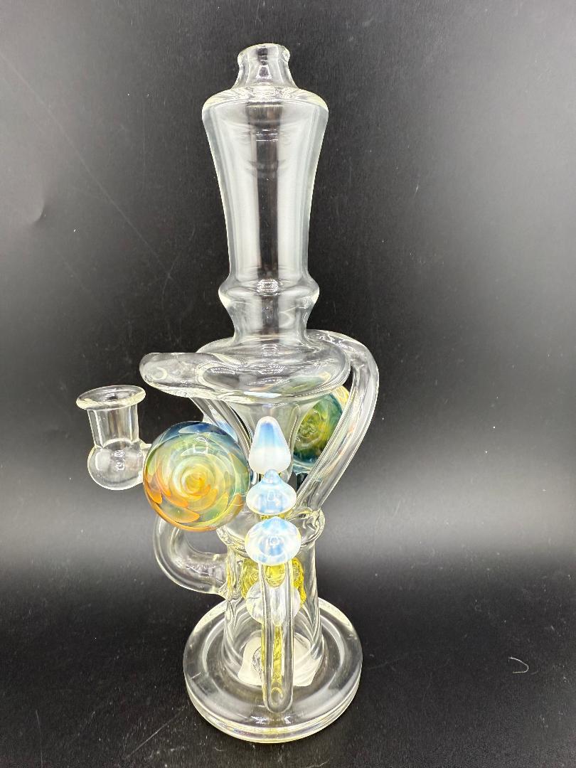 The Brando Glass Mushroom Recycler w/ Fumed Implosion Pendants is perfect for collectors and enthusiasts seeking a functional piece with eye-catching artistry. Enjoy reliable performance, stunning design, and true Spokane-made quality in every session.