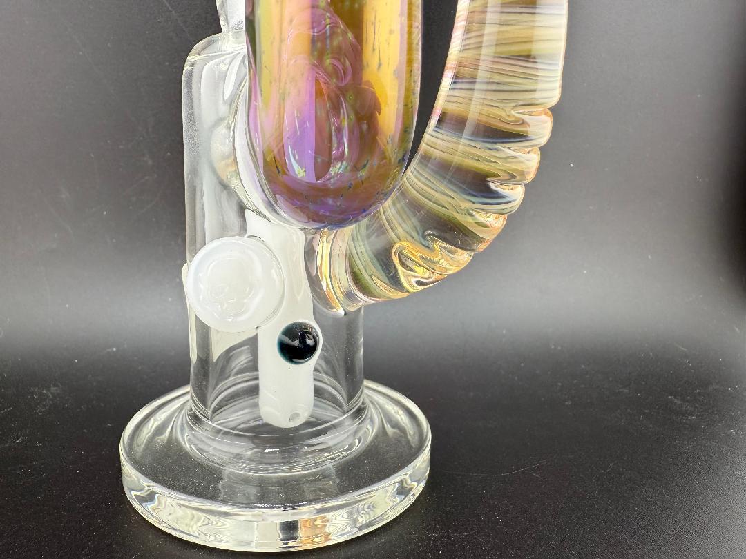 The Brando Sherlock Horn Rig blends classic style with precise functionality. Designed with a 10mm 90° joint, this rig offers smooth, controlled pulls in a compact Sherlock-style design. Its ergonomic shape and durable glass construction make it perfect for collectors and daily users alike.