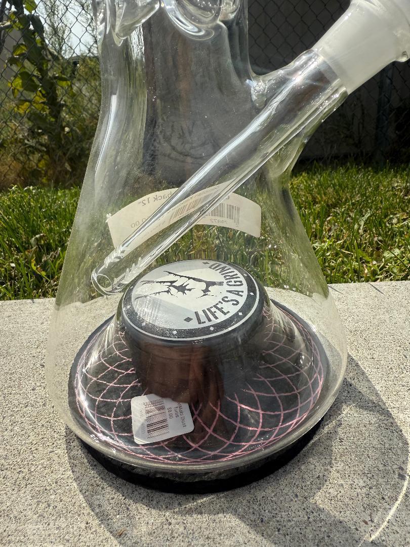 The Compton Glass Kickback 12" combines high-performance design with innovative functionality. Standing 12 inches tall and featuring a 14mm 45° joint, this water pipe includes a built-in grinder, making it a convenient all-in-one piece for enthusiasts. Its durable construction ensures smooth, clean hits while providing long-lasting performance.