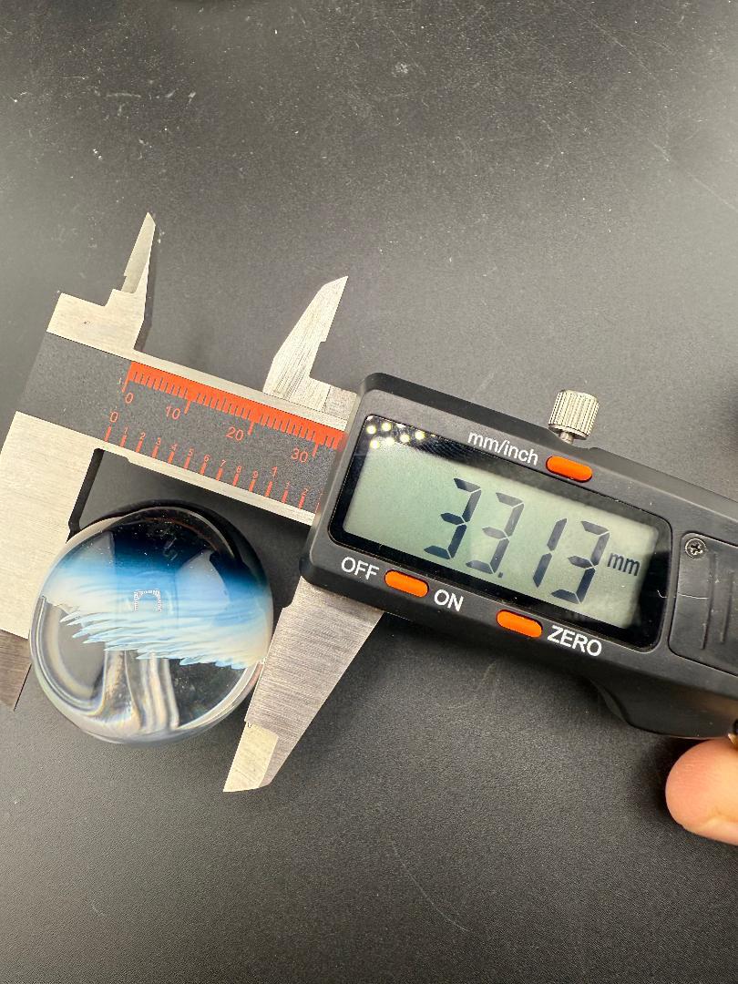 Handcrafted in Spokane, Washington, this Danny W Glass 33mm Marble features a stunning white implosion design. Made with high-quality borosilicate glass, it combines artistry and functionality, making it a standout piece for collectors and enthusiasts alike.