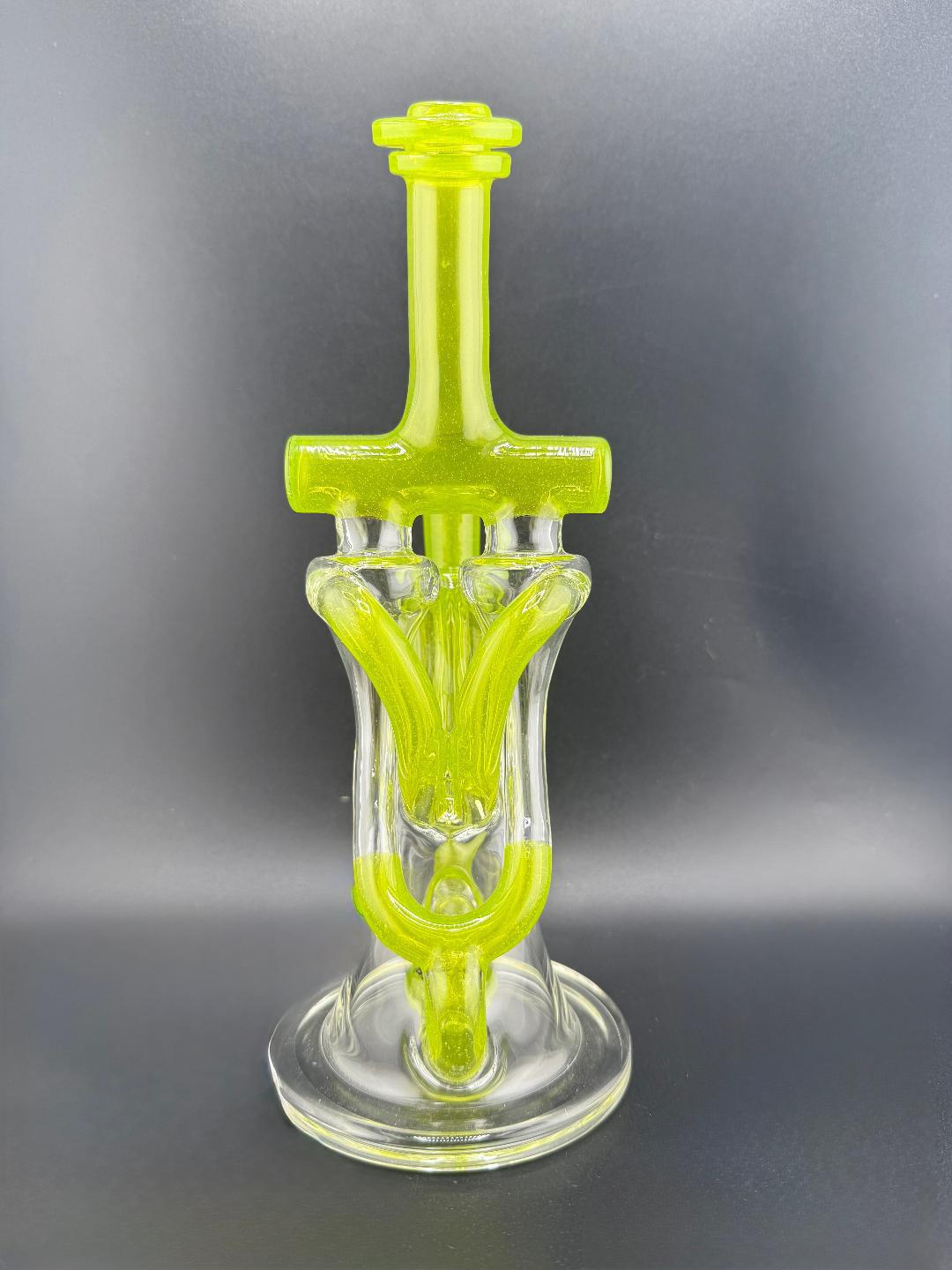 Level up your function and flow with the Domer Glass Double Recycler, a beautifully engineered piece featuring a sleek green colorway and precision-tuned dual recycling system. Designed for smooth, splash-free draws and enhanced flavor, this rig is a standout choice for concentrate connoisseurs and glass collectors alike.