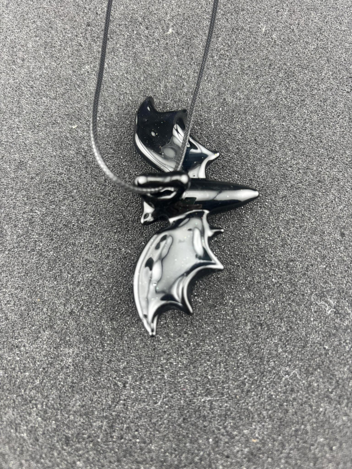 Filla John Bat Pendant with Blue Stardust – Handcrafted in the Pacific Northwest