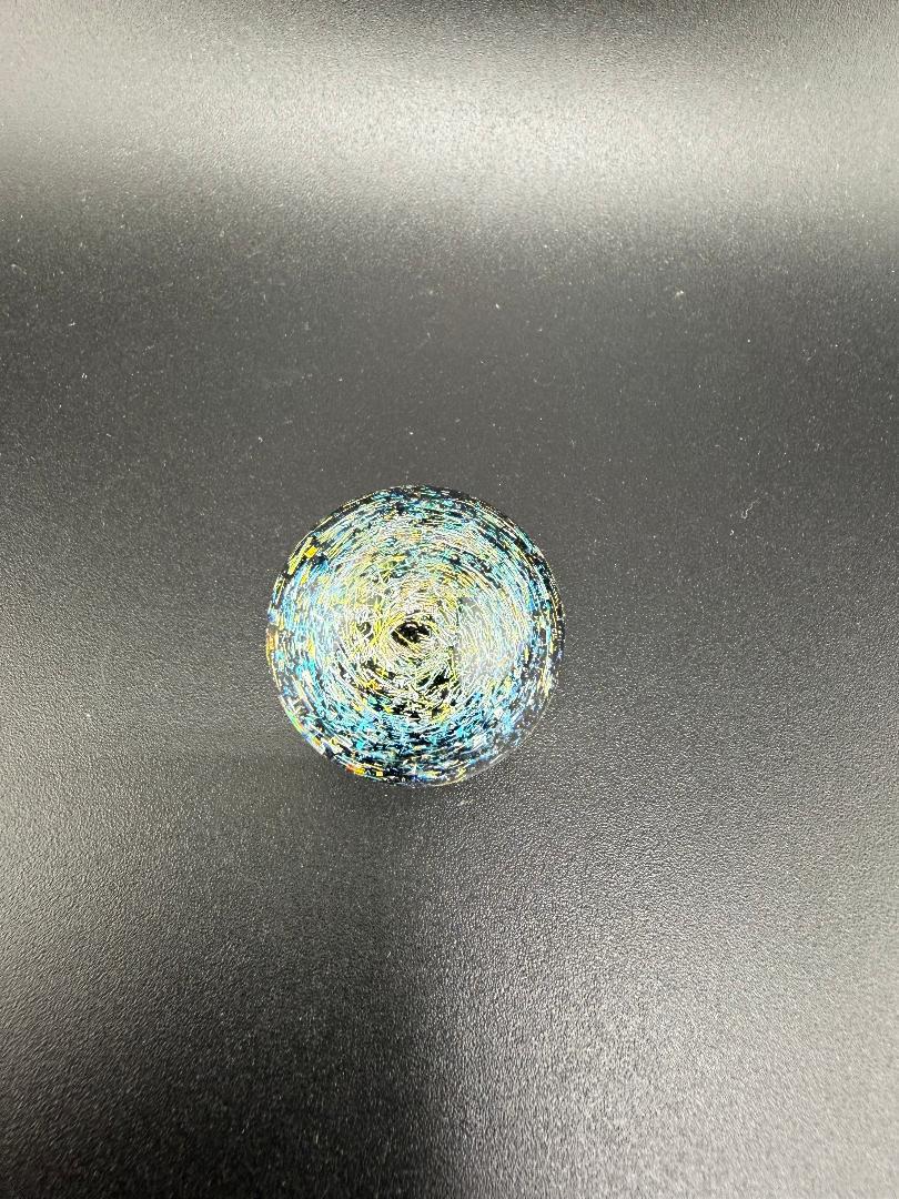 Handcrafted in Spokane, Washington, the Filla John Dichro Marble is a mesmerizing piece of glass art, featuring shimmering dichroic accents that shift and sparkle under different lighting. This intricate design captures cosmic depth and brilliance, making it a standout addition to any glass collection. Whether displayed as a collector’s piece or used functionally, this marble showcases Filla John's exceptional craftsmanship and attention to detail.