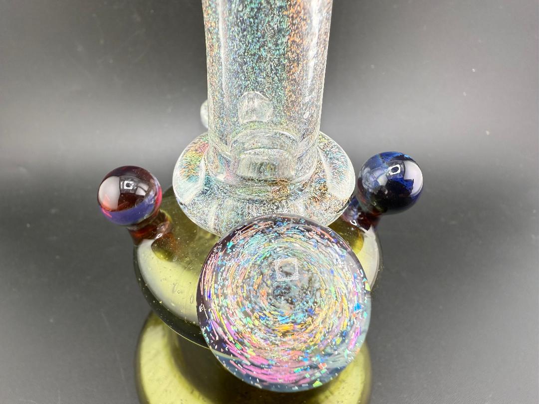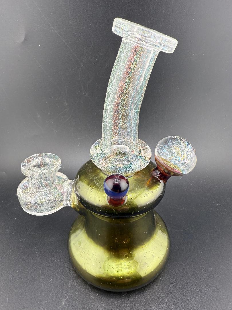 The Filla John Glass CFL Banger Hanger w/ Dichro Neck & Joint is perfect for enthusiasts seeking a high-performance rig that doubles as a vibrant, collectible piece of American glass art.