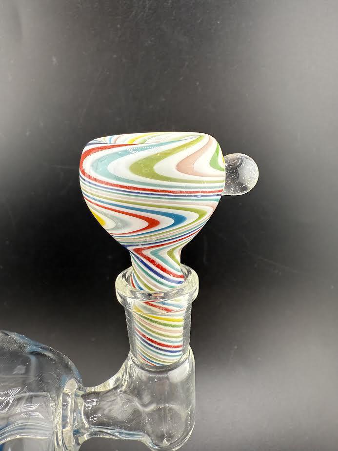 Make a bold statement with this Fully Worked Wig Wag 14mm Bowl Piece — a true showcase of glass art and precision. Featuring intricate, hand-blown wig wag linework from top to bottom, this piece is fully saturated with vibrant colors and clean pattern transitions. Every curve and swirl is carefully crafted, making each bowl a one-of-a-kind visual masterpiece. Built from high-quality borosilicate glass with a 14mm male joint, it’s as functional as it is eye-catching. Whether you're upgrading your daily driver or adding to your heady collection, this fully worked piece delivers serious style and smooth performance.
