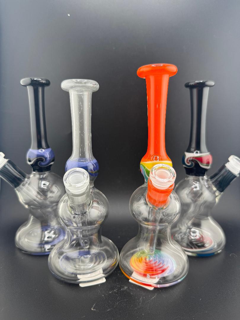 The Grandpa Dad Glass Wig Wag Bottom Worked Neck Jammer combines functional design with artistic flair. Featuring a 10mm 45° joint and intricate wig wag work on the neck and base, this compact jammer delivers smooth, controlled hits while showcasing craftsmanship and style. Its durable glass construction ensures long-lasting performance for both collectors and daily users.