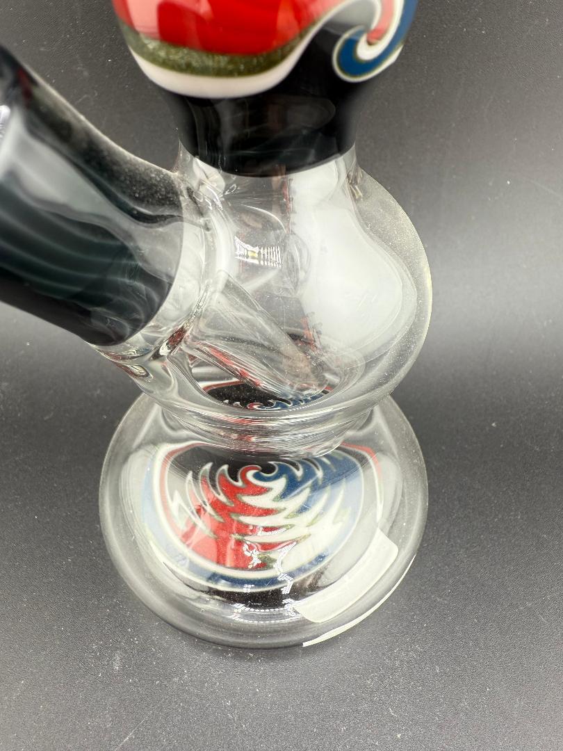 The Grandpa Dad Glass Wig Wag Bottom Worked Neck Jammer is perfect for enthusiasts who value artistry and function in a single piece. Its unique design and reliable performance make it a standout addition to any collection.