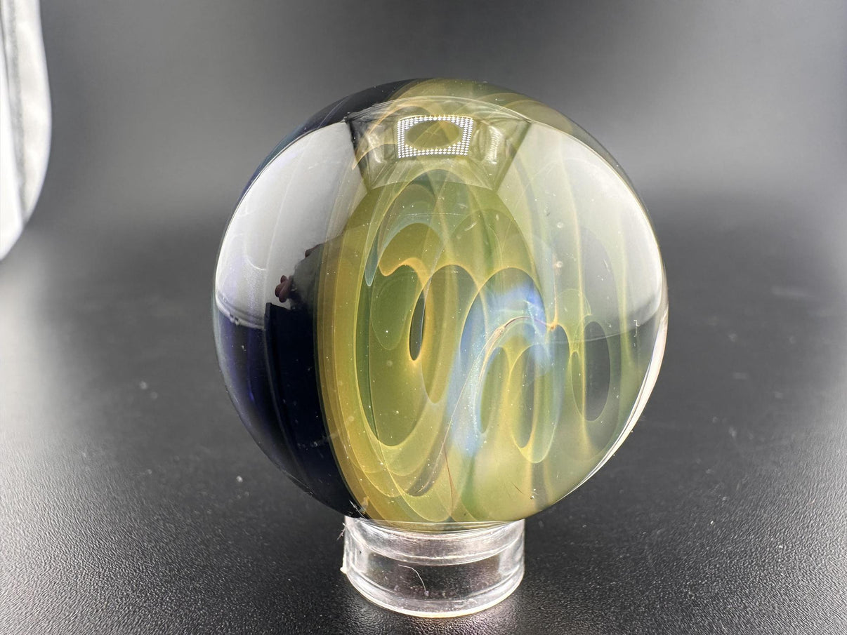 Immerse yourself in the bold artistry of the Guido Glass Marble – Chaos Backed Fumed Swirl, a striking handcrafted piece measuring approximately 1 inch. Featuring a unique chaos backed design combined with expert fume work, this marble showcases swirling layers of color and depth, creating a captivating visual explosion that changes with every angle.
