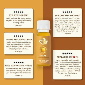 Wake is designed to energize your body and sharpen your mind, giving you a clean, focused start to the day without the anxiety or crash associated with traditional energy drinks.