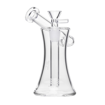 The Human Grade Hourglass Sidecar Bubbler features a unique side-mounted mouthpiece and hourglass-shaped base for a sleek and functional design. Handmade from 100% borosilicate glass, this durable piece includes a built-in downstem for smooth, efficient performance. Compact yet powerful, it’s designed for a premium experience.