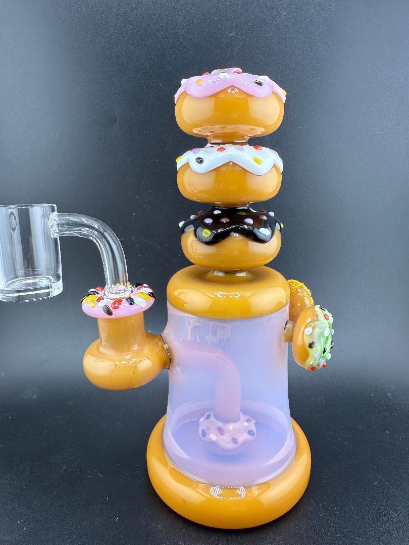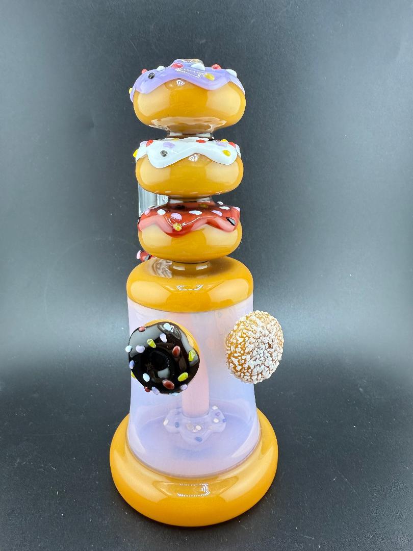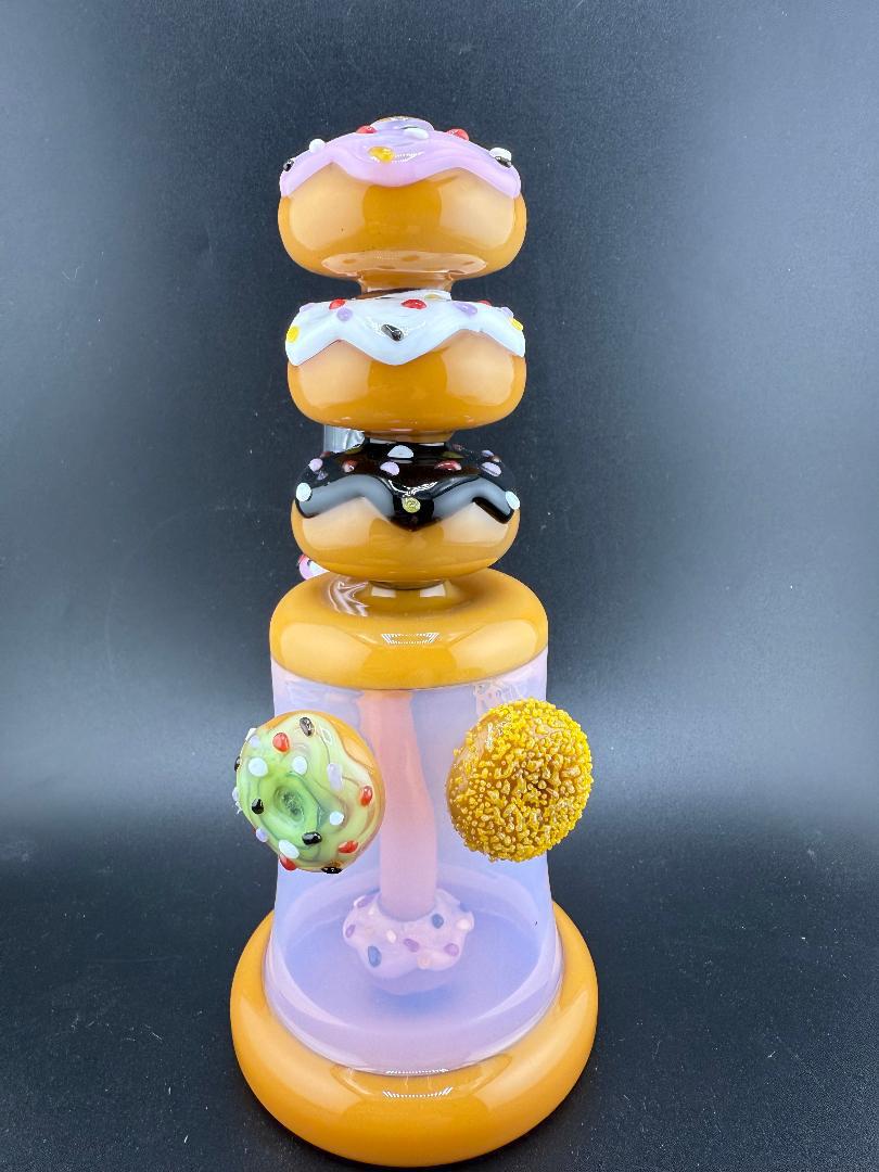 The triple doughnut structure isn’t just for looks—it enhances your sesh by improving vapor cooling and adding resistance to splashback. It's a perfect blend of heady glass artistry and practical function.
