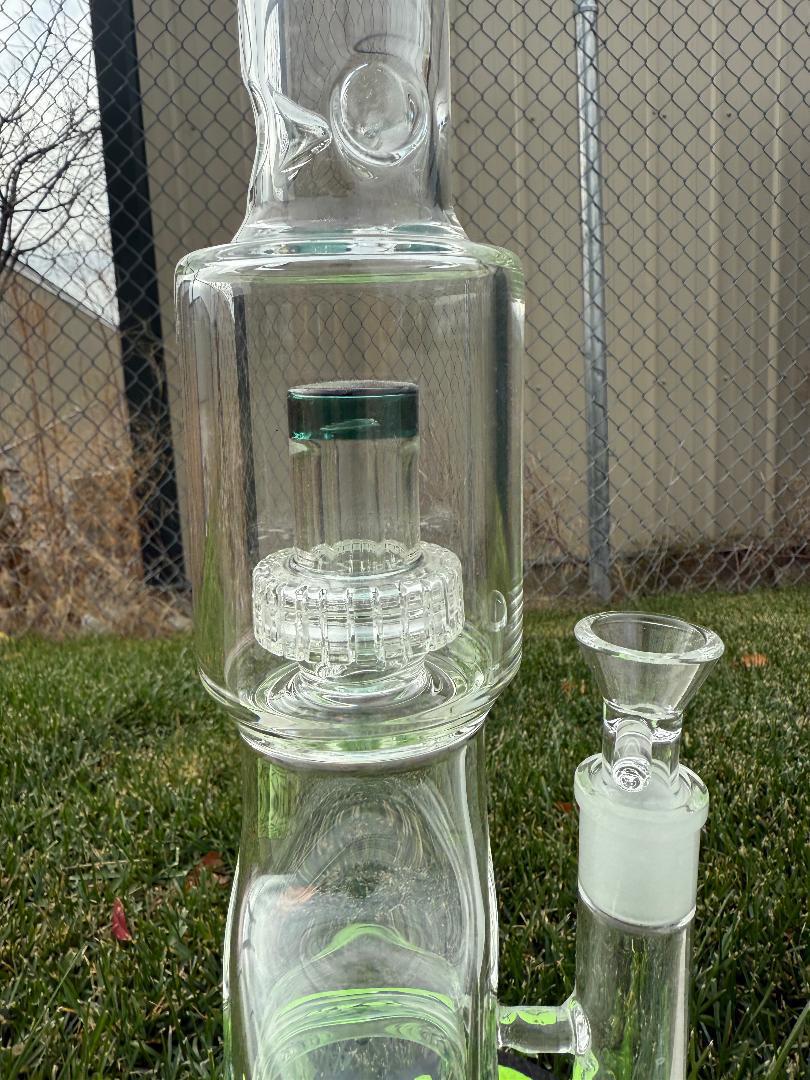 Upgrade your filtration and diffusion with the Import Glass Disk Perc to Matrix Rig. Designed with an 18mm, 90° joint, this rig combines two powerful percolation styles—a disk perc for broad diffusion and a matrix perc for smooth, refined hits—delivering superior cooling and cleaner vapor.