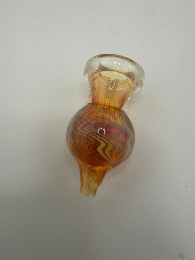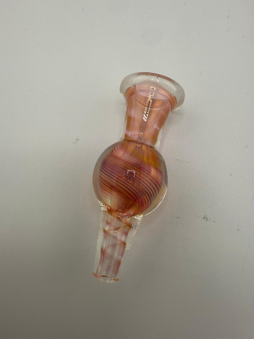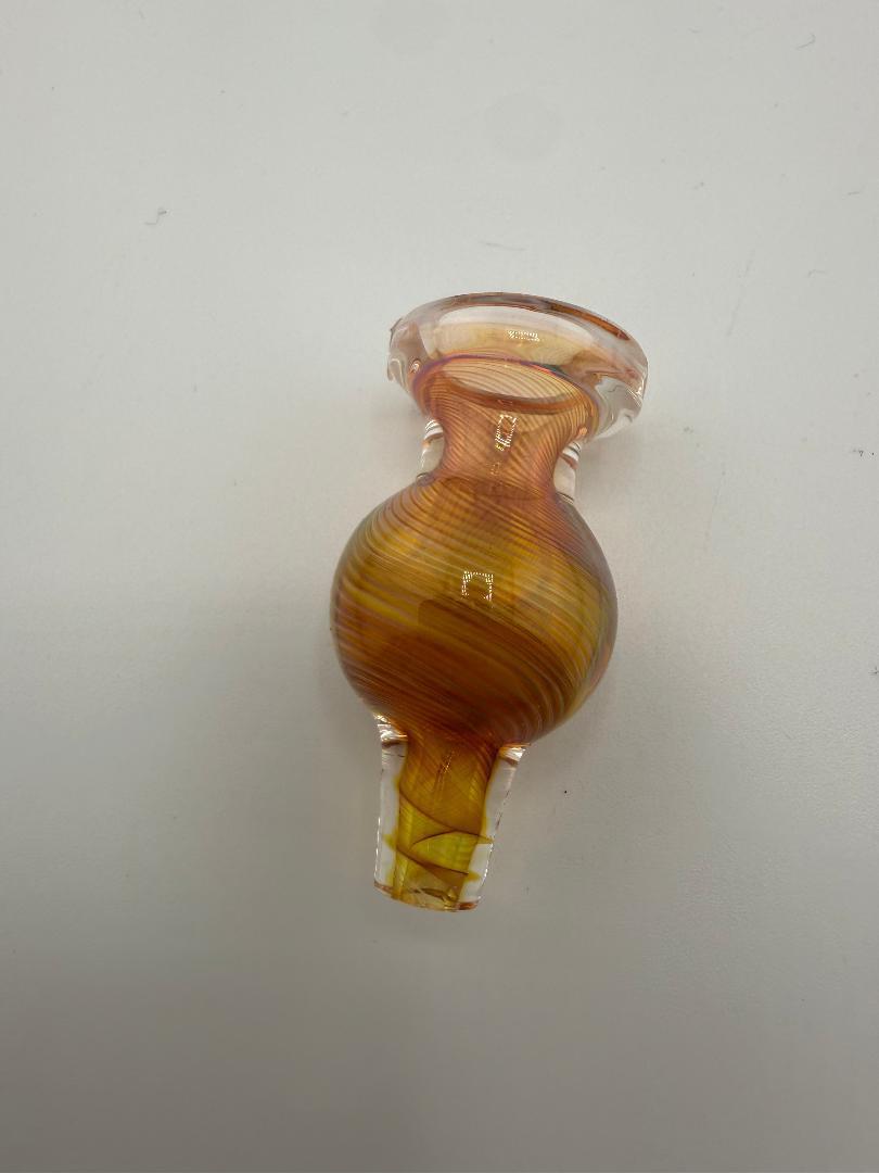 Elevate your dabbing setup with the Lylo Glass Fumed Carb Cap, a beautifully handcrafted piece that brings both performance and visual appeal to your quartz banger. Featuring a rich, color-shifting fumed finish, this carb cap is more than just functional—it's a piece of art.