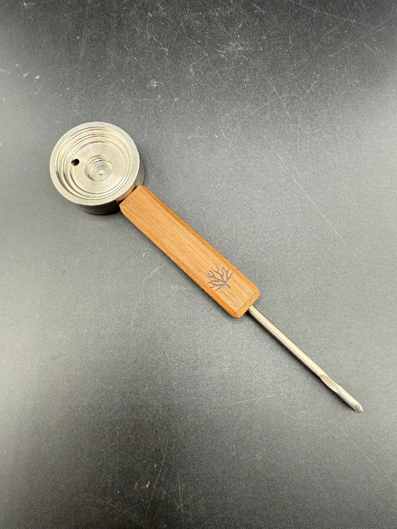 Elevate your dabbing setup with the Mystic Timber Titanium Puck Carb Cap & Pick, a functional piece of art designed and handcrafted by Bruce “Jorgy” Jorgensen and Mystic Deb Jorgensen. This set combines precision engineering with natural beauty, giving you full control over your concentrates while adding a touch of artisanal craftsmanship to your sessions.