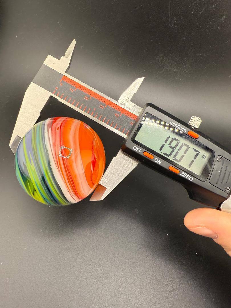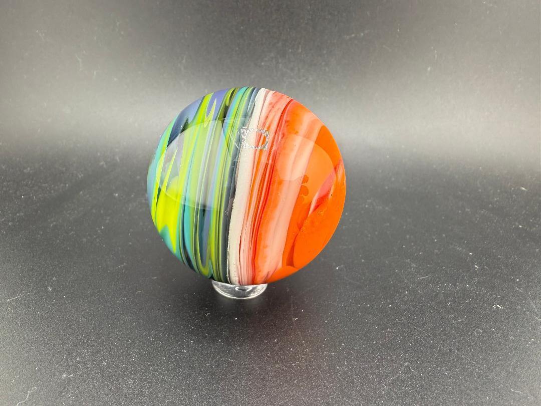 Measuring 2 inches in diameter, this marble is the perfect balance of size and detail, making it an ideal centerpiece for display or a unique addition to your glass collection. Whether you're a serious collector or someone who appreciates fine craftsmanship, the Paulson Pieces 2" Marble will stand out with its vibrant colors and detailed patterns.