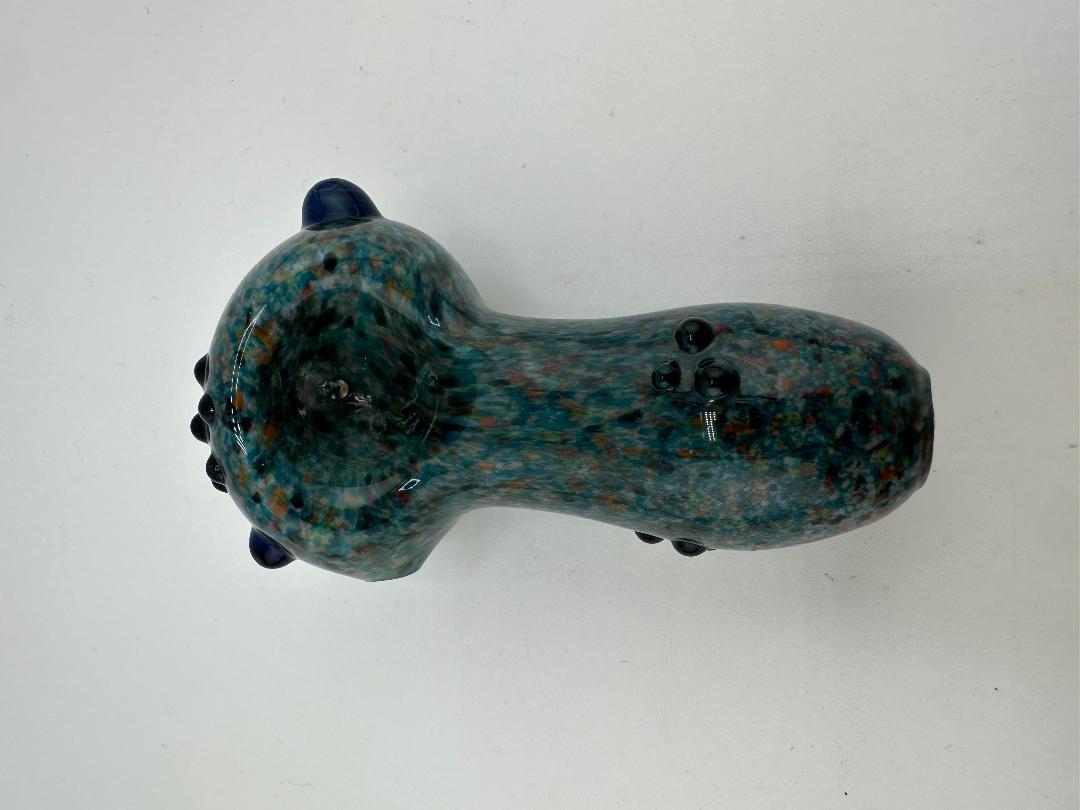 The Paulson Pieces Blue Frit Dry Pipe delivers clean American craftsmanship with bold, eye-catching color. Featuring a rich blue frit design layered throughout the glass, this piece offers a textured, speckled appearance that gives every pipe its own unique character.