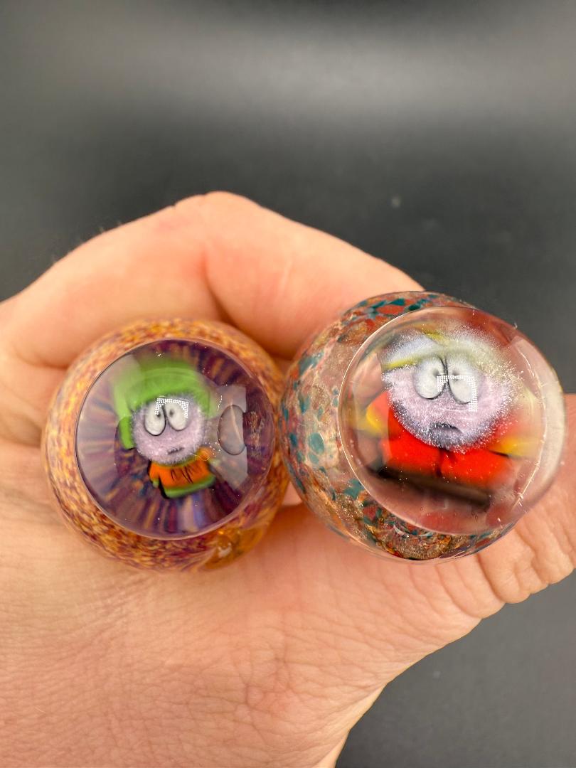 Bring some animated attitude to your rig with the South Park Frit Bubble Cap by Paulson Pieces. This handcrafted cap blends flawless function with a bold pop-culture twist, featuring vibrant frit work inspired by the iconic South Park crew. Each cap is individually blown, making every piece a one-of-a-kind collectible for fans and connoisseurs alike.