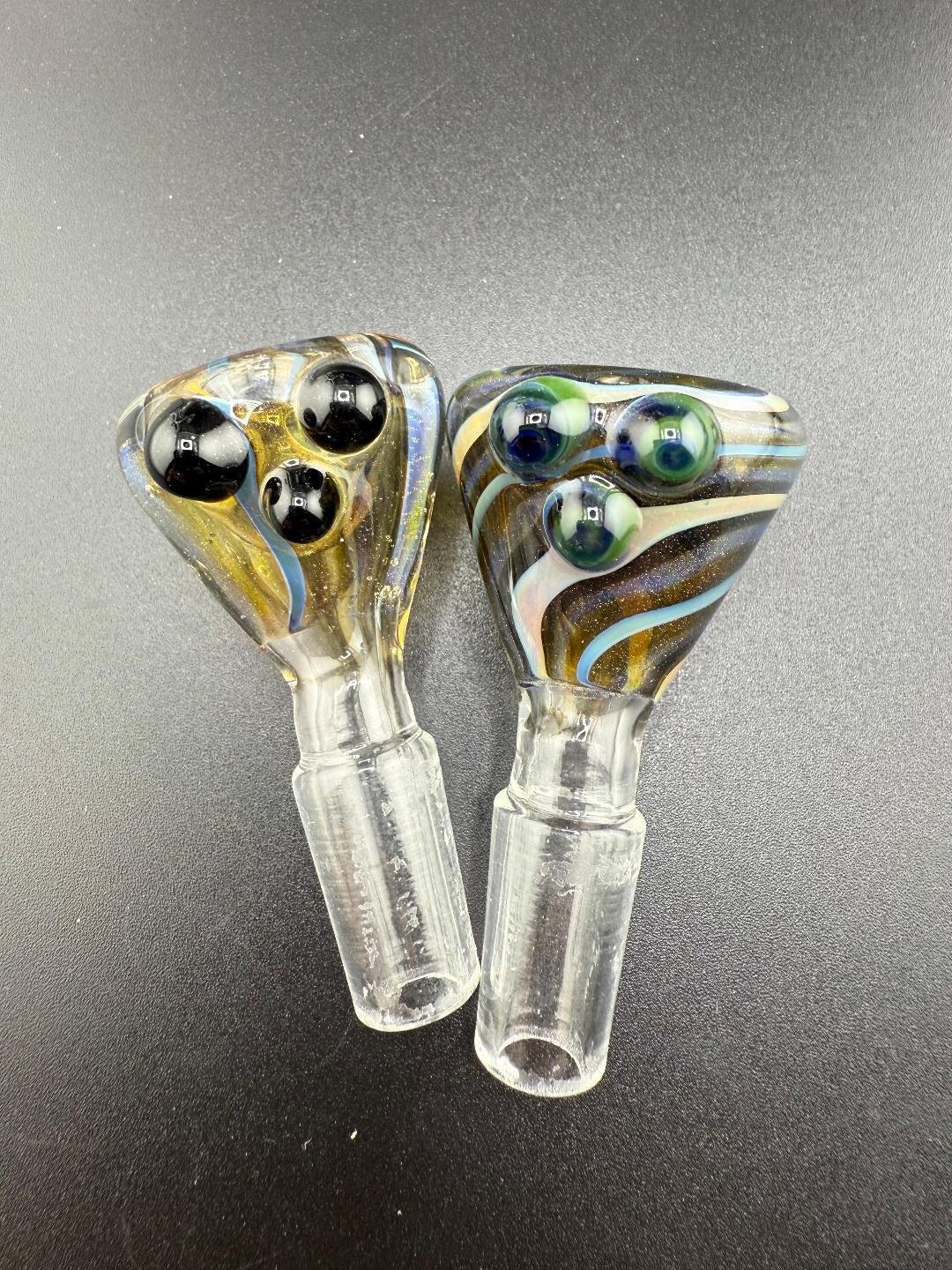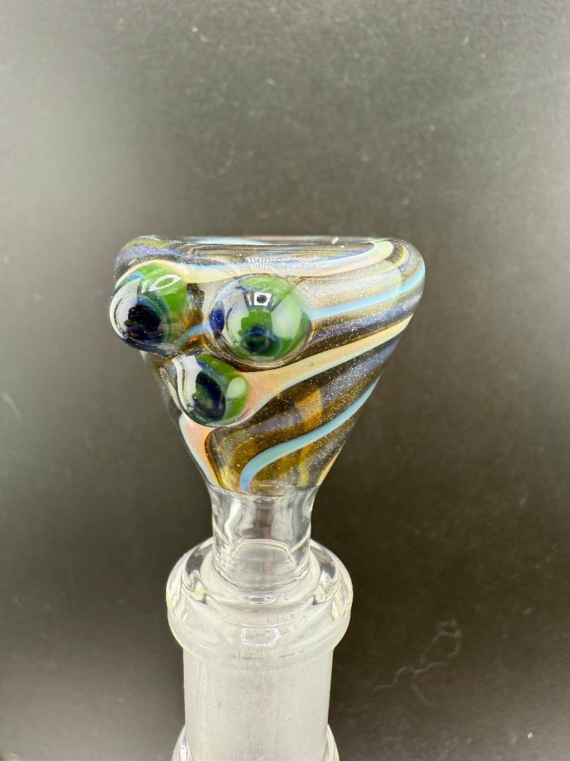 Made from durable, heat-resistant borosilicate glass, this 14mm male bowl is built for smooth sessions and daily use. The compact shape and colorful frit work make it a perfect upgrade for any bong or rig, especially for those who appreciate unique, handcrafted details.
