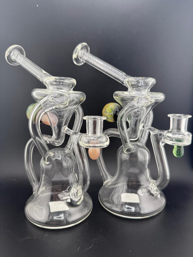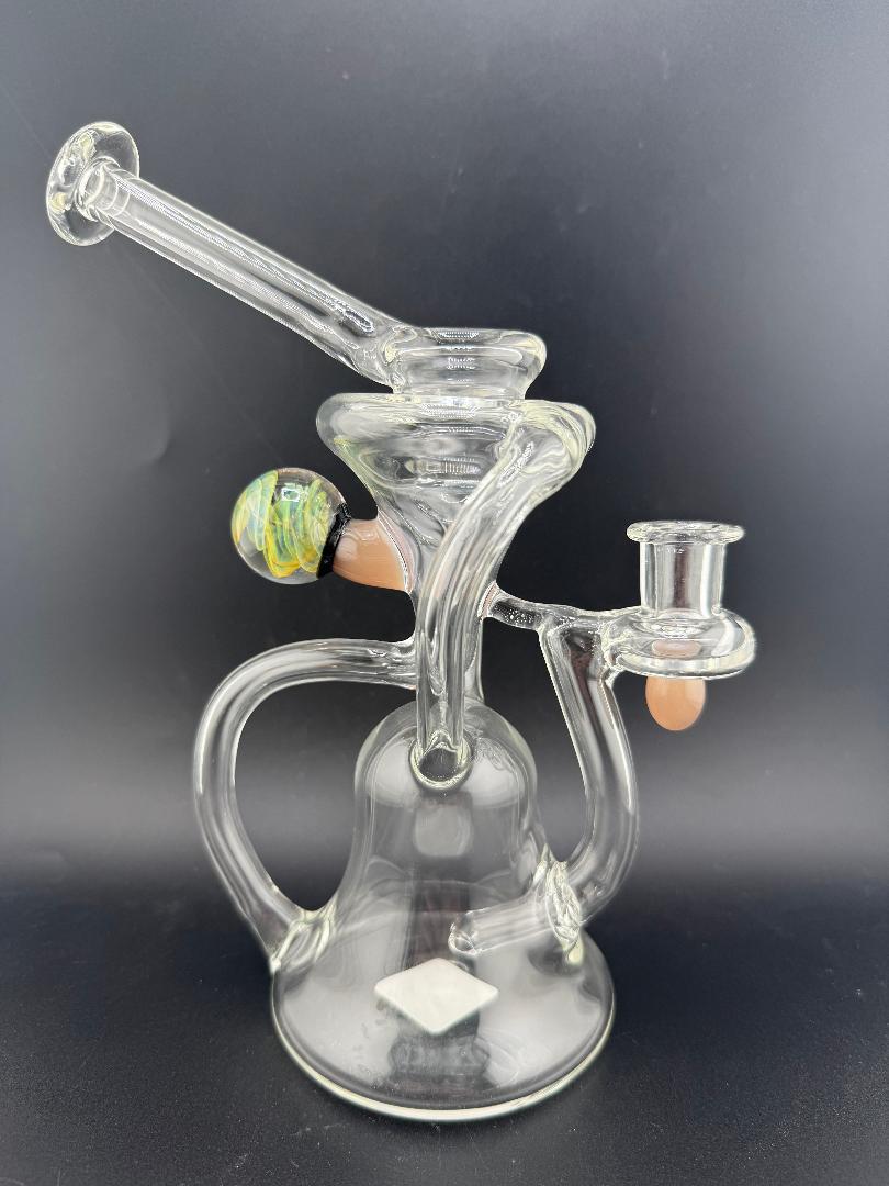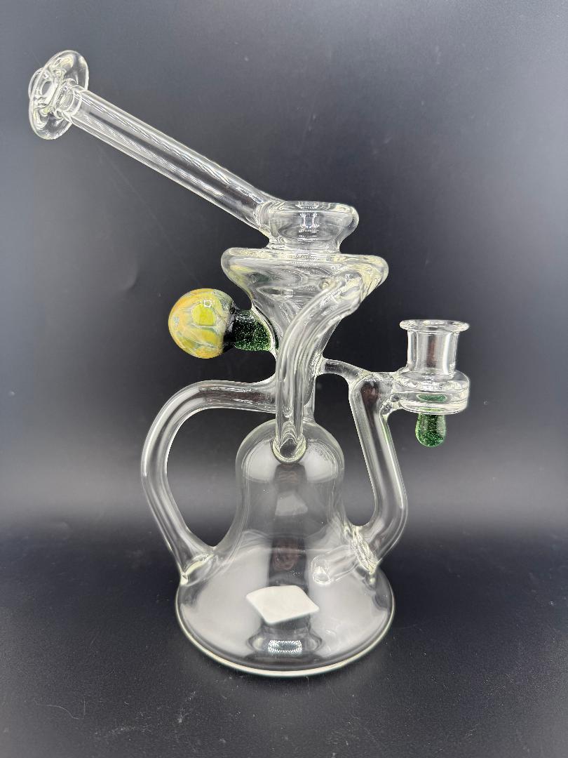 Pugsley Glass Clear Recycler – 10mm 90° | Green or Peach Accents