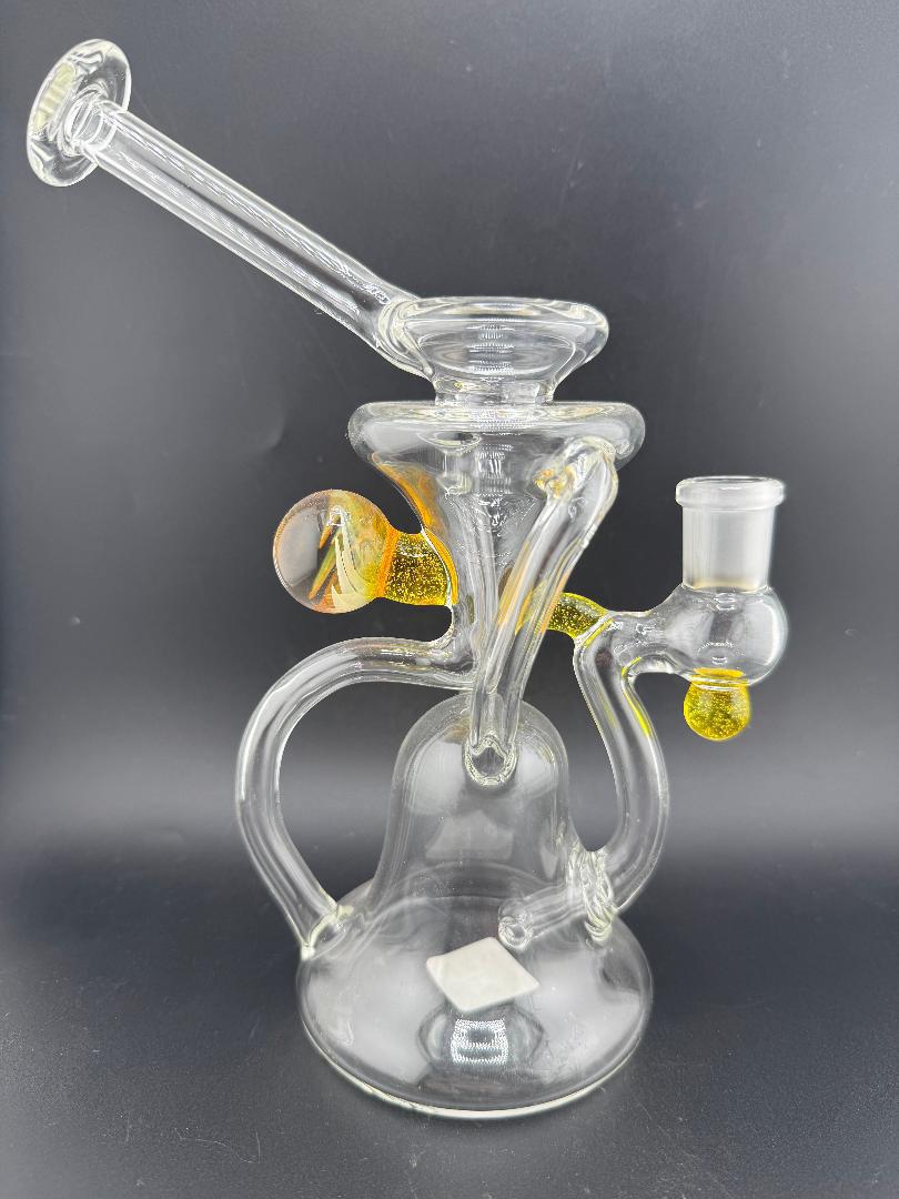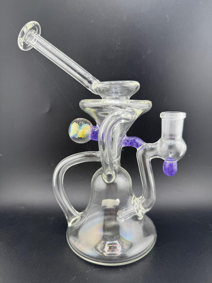 Pugsley Glass Clear Recycler – 14mm 90° | Orange or Purple Accents