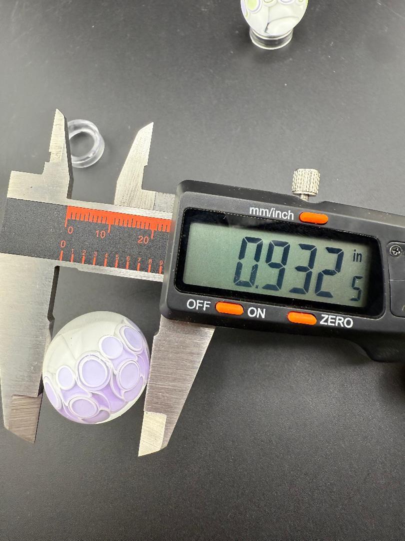 This SBJ Glass Marble features an intricate fancy dot stack suspended over a clear borosilicate base, creating a visually striking, high-quality piece of functional art. Measuring approximately 1 inch, it’s perfectly sized for a variety of glass applications.