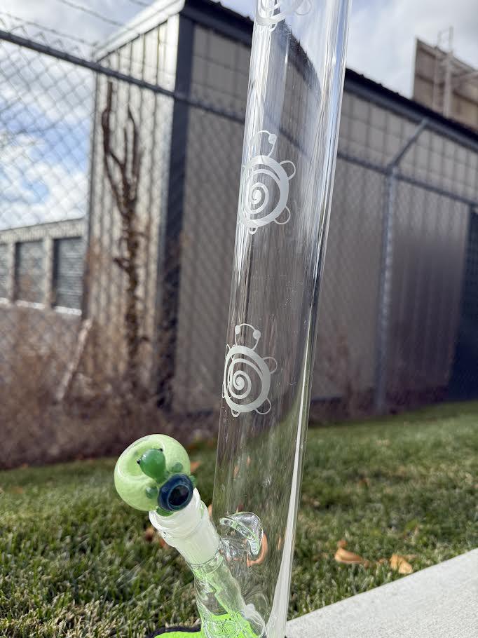 Simplicity meets nature-inspired artistry in the Turtle Straight Tube by Wildfire Productions. Handblown in the Pacific Northwest, this piece features a classic straight tube design paired with a sculpted turtle accent — bringing a touch of laid-back charm and wilderness spirit to your setup.