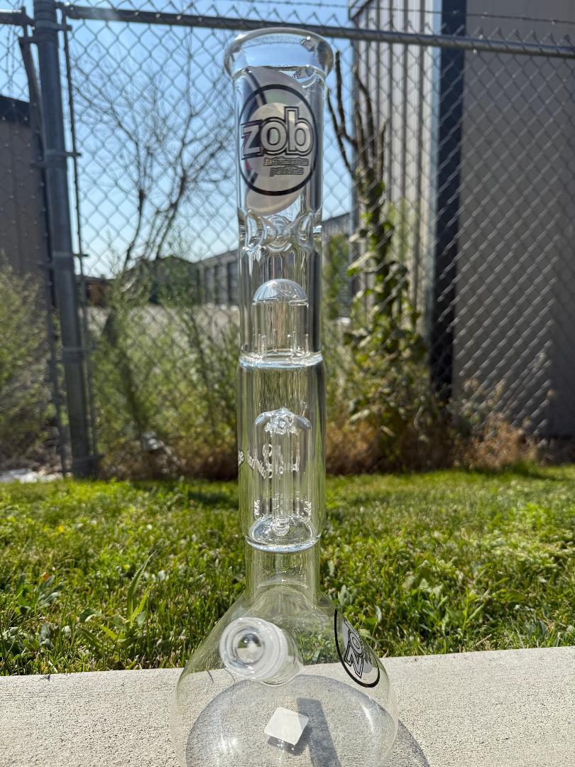 Step up your collection with the Zob Glass 14" Mini 4 Arm Beaker Flower Piece, designed for optimal filtration and vibrant style. This beaker rig features four-arm flower percolators that provide excellent diffusion, delivering smooth, cool hits with every session.